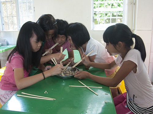 怀着对饺子的期待,员工们继续回到教室上课,由生活组组员协助饭堂阿姨蒸饺子。下课铃一响,小朋友们又马上冲到饭堂,等待新鲜出炉的饺子。由于许多小朋友都是第一次包饺子,饺子形状都不太好看,许多都黏在一起,但因为是自己劳动成果,大家一点都不觉得沮丧,吃得津津有味,十分钟不到,满满三大盘的饺子就被吃光了。每位员工只吃到两到三个饺子,但已经很满足了。生活组准备这场包饺子的活动,希望他们能理解到平时父母做饭的不容易,同时也让员工们领悟到靠自己劳动换来的成果最美味,希望小朋友们学会运用自己的双手创造更大的财富。