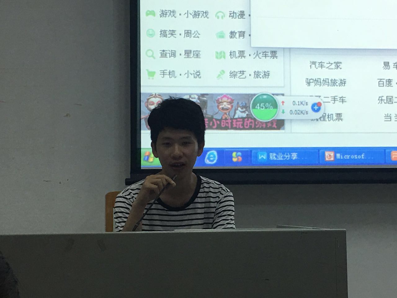 太阳成集团tyc122cc2014级于2017620举行就业分享会,2014级辅导员杨志增老师主持,这次分享邀请了2013级的师兄师姐为2014级的同学们分享考研、出国留学、考公、就业的就业经验,师兄师姐们真诚地分享自己的经历,2014级同学们反映热烈,受益匪浅。